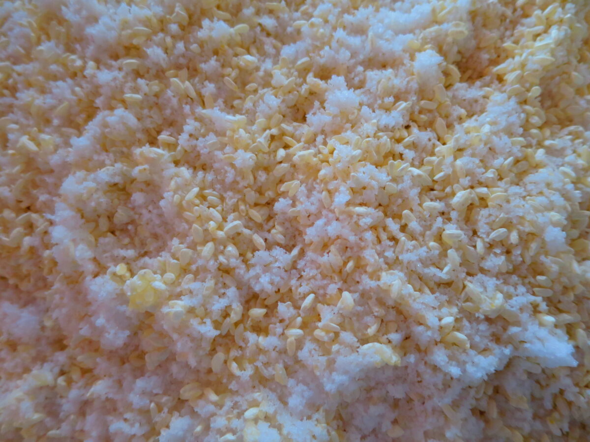 昨年の、お味噌を種味噌に友達が育てた美味しい大豆と井筒屋さんの米麹と塩。